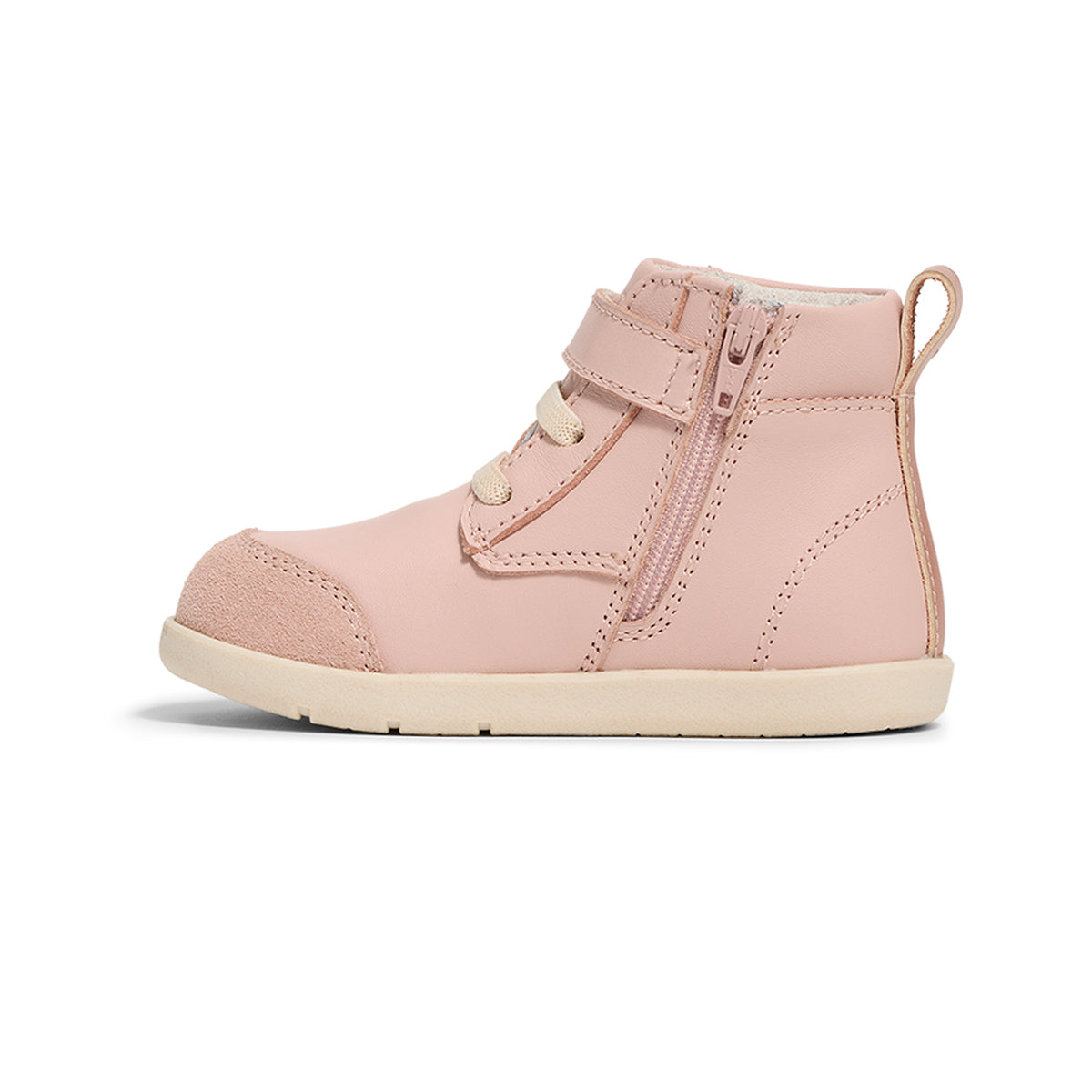 Jessie is a supportive everyday sneaker by Pretty Brave, designed for little kids gaining confidence walking. Crafted from genuine leather with breathable lining, Jessie features elastic laces, durable suede toe cap, an adjustable hook and loop strap, and an inner zipper for easy on and off. The flexible rubber sole and padded collar provide comfort, movement, and support. Podiatrist approved for healthy foot development.